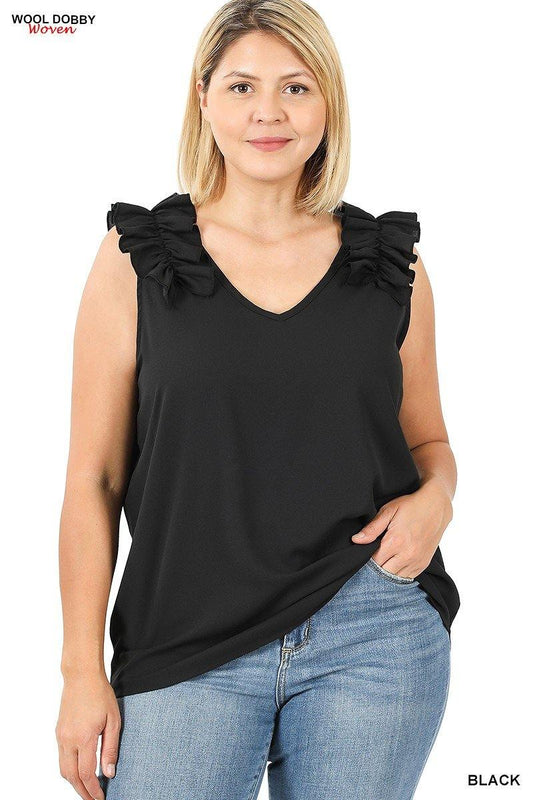 Mary L Plus Woven Ruffle Top, Royal Blue