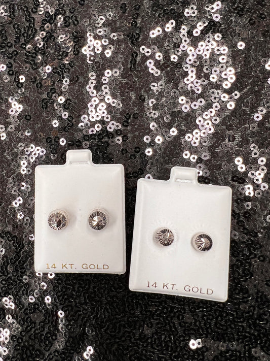 14K White Gold Diamond Cut Studs