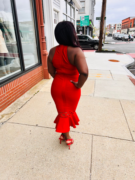 Red Trumpet Midi Dress